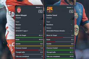 体育资讯05月02日讯 Squawka对姆巴佩和亚马尔在各自17岁时的联赛场均数据进行了对比,两人互有胜负。其中,姆巴佩在射门终结方面占优,亚马尔则在机会创造和过人方面占优。